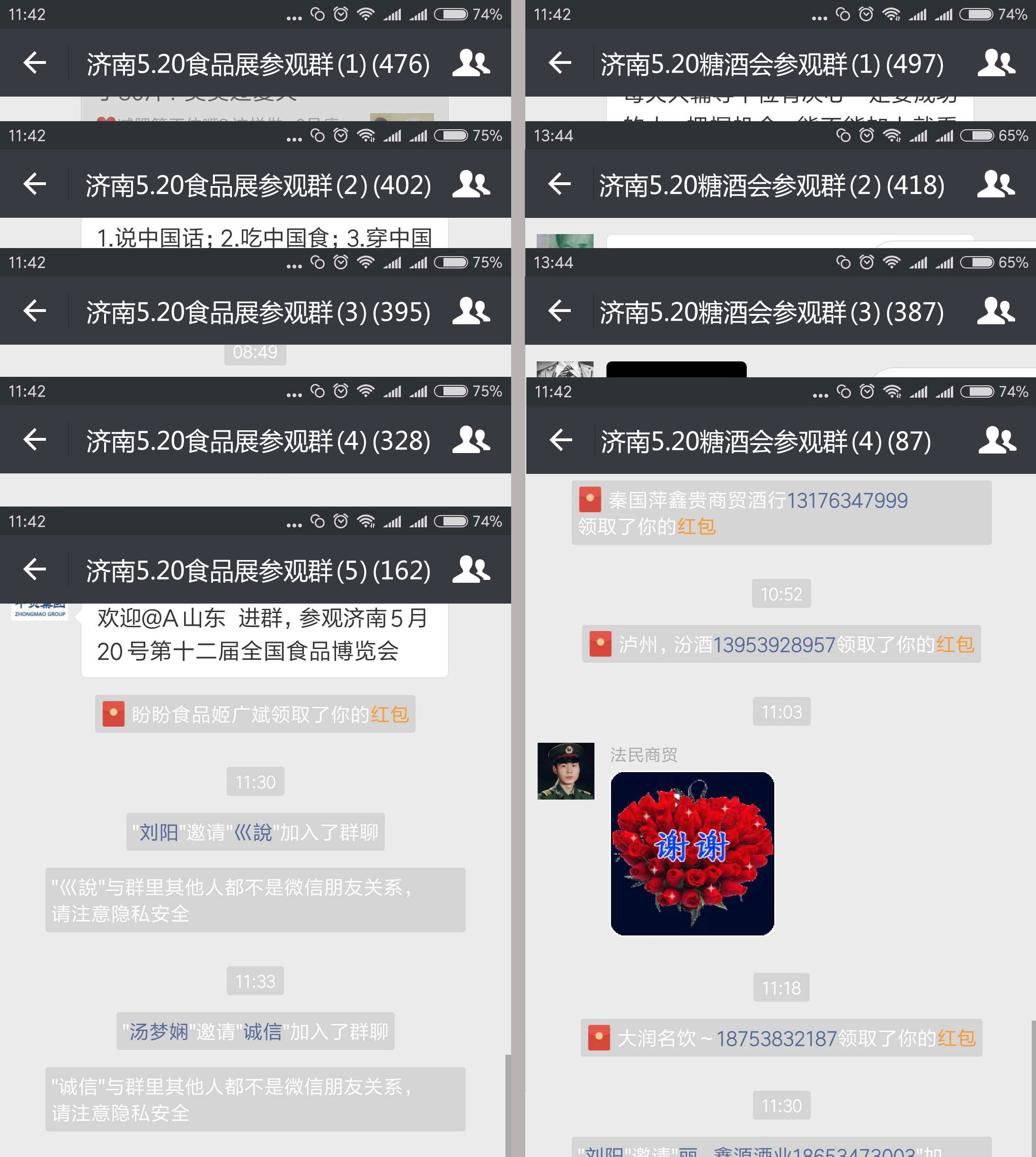 微信群成员覆盖全国重点城市各大副食品城,经销商,代理商等相关行业,目前已建立多个专业观众微信群,每个群成员接近500人。目前,微信群还在如火如荼的建立当中,相信最后的结果一定惊为天人。